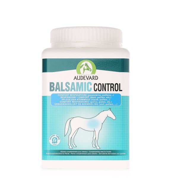 Balsamic Control is a complementary feed formulated by Audevard Laboratories. It has been designed to provide additional nutrition to meet the respiratory needs of horses that live in dusty environments (pollen, mould etc.) and young racehorses undergoing training.Some horses are particularly sensitive to the quality of the air they breathe. The presence of dust, mould or pollen can cause recurrent respiratory disorders or discomfort when the horse begins working, creating additional nutritional requirements. Such disorders can pose a problem to both horses and riders.This new formula, specially designed to manage respiratory conditions, contains a unique combination of four ingredients (nigella, lemon, eucalyptus and garlic) that have been carefully selected by our experts. Users like this plant-based formula because it does not contain any ingredients that could lead to a positive result during anti-doping tests, and because it is a practical, long-term option for horses that live in dusty environments (pollen, mould etc.)