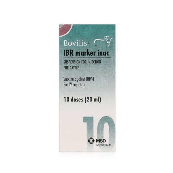 Bovilis IBR marker inactivated injection is used for active immunisation of cattle to reduce the intensity and duration of clinical signs (pyrexia) induced by an infection with bovine herpesvirus type 1 (BHV-1) as well as to reduce the replication and nasal excretion of the field virus. Onset of immunity:- 3 weeks. Duration of immunity:- 6 months. The schedule using Bovilis IBR Marker Live for primary vaccination and revaccination after 6 months with Bovilis IBR Marker Inac, will result in protective immunity that lasts for 12 months.