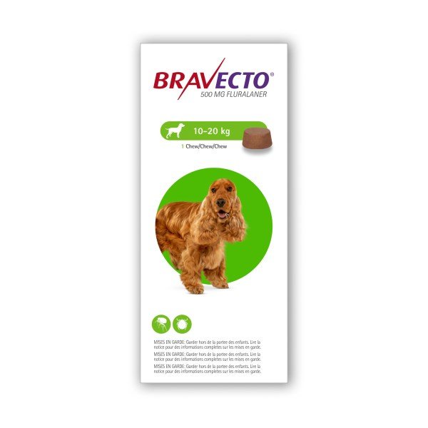 Bravecto Chewable Tablets for Dogs is used for the tratment of flea and tick infestations. It provides immediate and persistent flea and tick killing activity for 12 weeks, Fleas and ticks must attach to the host and commence feeding in order to be exposed to the active substance. The onset of effect is within 8 hours of attachment for fleas (C. felis) and 12 hours of attachment for ticks (I. ricinus).Bravecto is a chewable tablet and is well accepted by most dogs. If the tablet is not taken up voluntarily by the dog it can also be given with food or directly into the mouth. The dog should be observed during administration to confirm that the tablet is swallowed.For optimal control of flea infestation, the veterinary medicinal product should be administered at intervals of 12 weeks. For optimal control of tick infestation, the timing of retreatment depends on the tick species. For use in dogs from 8 weeks of age only.