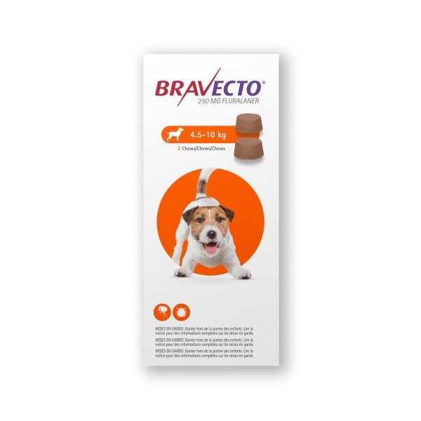 Bravecto Chewable Tablets for Dogs is used for the tratment of flea and tick infestations. It provides immediate and persistent flea and tick killing activity for 12 weeks, Fleas and ticks must attach to the host and commence feeding in order to be exposed to the active substance. The onset of effect is within 8 hours of attachment for fleas (C. felis) and 12 hours of attachment for ticks (I. ricinus).Bravecto is a chewable tablet and is well accepted by most dogs. If the tablet is not taken up voluntarily by the dog it can also be given with food or directly into the mouth. The dog should be observed during administration to confirm that the tablet is swallowed.For optimal control of flea infestation, the veterinary medicinal product should be administered at intervals of 12 weeks. For optimal control of tick infestation, the timing of retreatment depends on the tick species. For use in dogs from 8 weeks of age only.