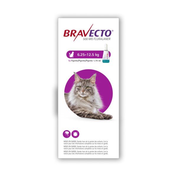 Bravecto 500mg Spot-On for Large Cats - 6.25 - 12.5kg Single Pipette