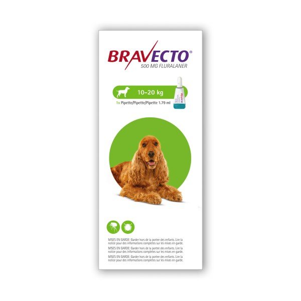 Bravecto 500mg Spot-On for Medium Dogs 10-20kg Single Pipette