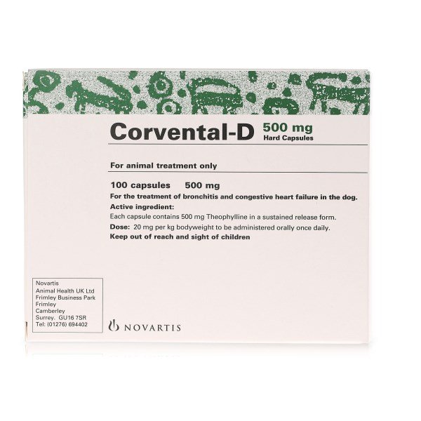 Corvental-D capsules is used in the treatment of bronchitis and congestive heart failure in dogs.