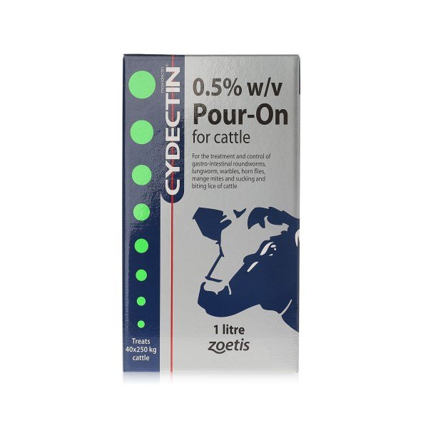 Cydectin 0.5% Pour-On for Cattle is a yellow oily solution containing 5 mg