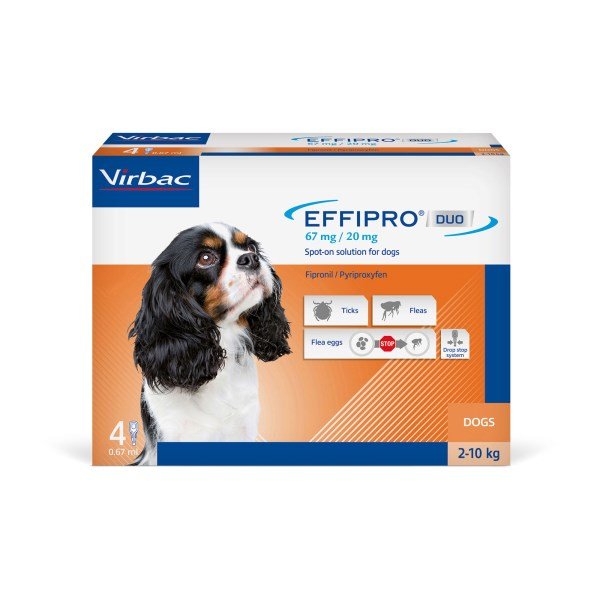 Effipro Spot-On Duo for Dogs & Cats has been specially formulated for optimal protection against fleas, ticks and household flea infestations.Benefits:Long-lasting protection against developing flea eggsProvides 3 months of protection against flea life cycleBroadens coverage to target key developmental steps within the flea life cycleFormulated with a unique drop-lock pipette to ensure precise fingertip control throughout application.