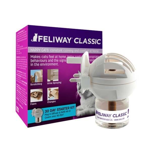 Feliway is a synthetic copy of the feline facial pheromone, used by cats to mark their territory as safe and secure.By mimicking the cat's natural facial pheromones, Feliway creates a state of familiarity and security in the cat's local environment.As a result, Feliway can be used to help comfort and reassure cats, while they cope with a challenging situation and