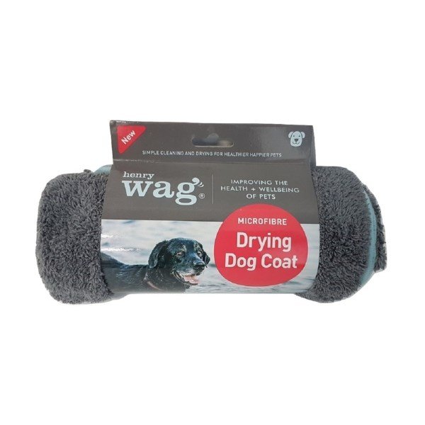The luxurious Henry Wag Drying Coat is made using GRS 80% recycled polyester. It is top quality, soft and highly absorbent microfibre which is extremely effective at removing dirt and water from your dogs coat. Cleanliness and hygiene are vital when striving for excellence in pet care, by removing water and dirt from your dogs coat it reduces the risk of infection and contributes to a happier and healthier dog. Our Drying Coat can be used after wet walks, swimming or bathing. Its easy to put on and a simple strap placed across the tummy holds the coat securely in place. There is a lead-harness slot on the back seam of the coat. Due to the advanced microfibre technology in our Drying Coat, it absorbs more water than a regular towel and dries more quickly. Helps to remove excess water and dirt to reduce the risk of damage to both your car interior and home interior furnishings. NB: Non GRS Recycled items are being phased out of stock, you may receive one during this transition period. Features: - - Highly absorbent microfibre - Limits -the spread of dirt and water Washable at 30 degrees Dimensions: - MEDIUM Item Code: 40830 Back Length: 45 cm Chest: 60-64 cm