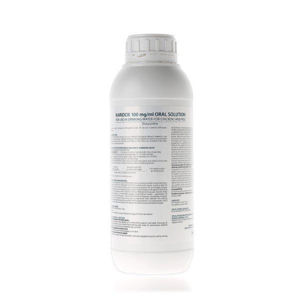 Karidox oral solution is used in: Chickens(broilers)- for the prevention and treatment of chronic respiratory disease (CRD) and mycoplasmosis caused by microorganisms sensitive to doxycycline. Pigs- for the prevention of clinical respiratory disease due to Pasteurella multocida and Mycoplasma hyopneumoniae sensitive to doxycycline. The presence of the disease in the herd should be established before treatment.