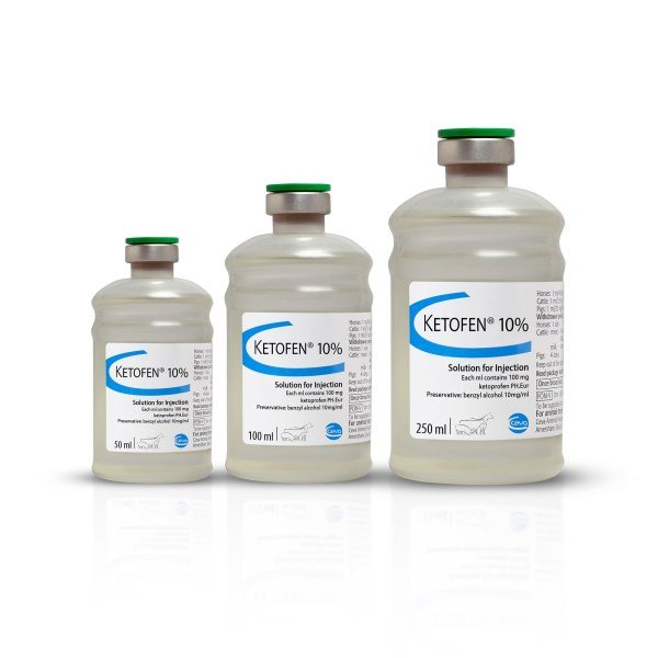 Ketofen 10% injection is used in: Horses For the alleviation of inflammation and pain associated with musculoskeletal disorders. For the alleviation of visceral pain associated with colic. Cattle For the supportive treatment of parturient paresis associated with calving. For reducing pyrexia and distress associated with bacterial respiratory disease when used in conjunction with antimicrobial therapy as appropriate. For improving the recovery rate in acute clinical mastitis, including acute endotoxin mastitis, caused by gram negative micro-organisms, in conjunction with antimicrobial therapy. For reducing oedema of the udder associated with calving. For reducing pain associated with lameness. Pigs For reducing the pyrexia and respiratory rate associated with bacterial or viral respiratory disease when used in conjunction with antimicrobial therapy as appropriate. For the supportive treatment of Mastitis Metritis Agalactia Syndrome in sows, in conjunction with antimicrobial therapy as appropriate.