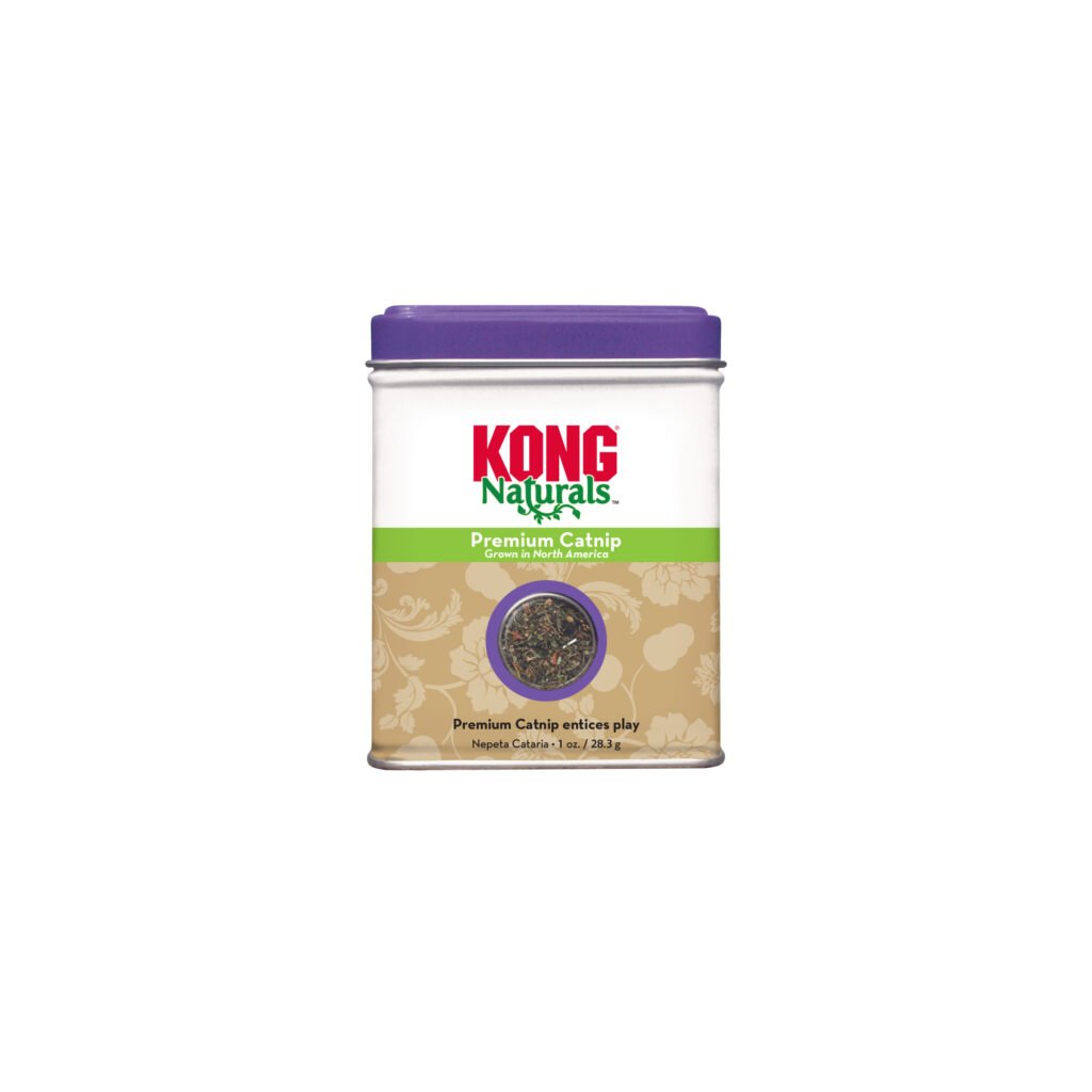 KONG Naturals Premium North American Catnip stays fresh in a handy, resealable portable tin. Use as a standalone treat, to refill KONG toys and to sprinkle on toys and scratchers for a pinch of happiness and to encourage appropriate scratching behavior.