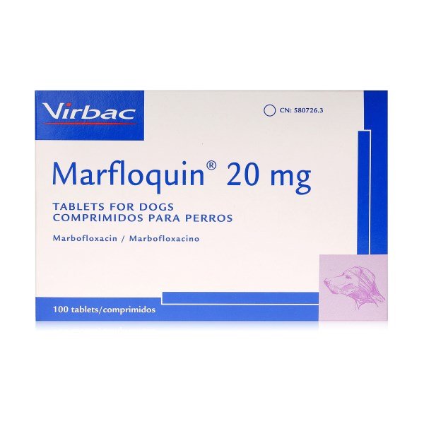 Marfloquin tablets are used in the treatment of infections caused by strains of microorganisms susceptible to marbofloxacin. In dogs: skin and soft tissue infections (skinfold pyoderma, impetigo, folliculitis, furunculosis, cellulitis); urinary tract infections (UTI) associated or not with prostatitis or epididymitis; respiratory tract infections. In cats (Marfloquin 5 mg tablet only): skin and soft tissue infections (wounds, abscesses, phlegmons); upper respiratory tract infections.