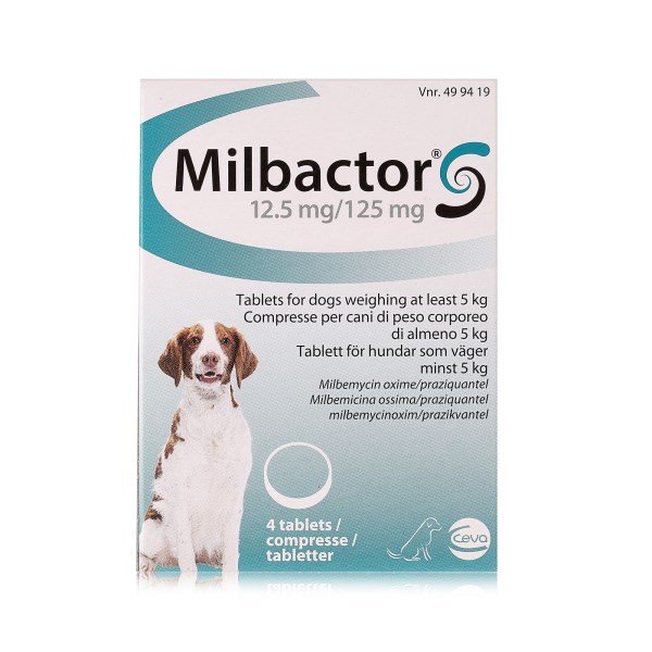 Milbactor 12.5mg/125mg Tablets for Dogs x 4