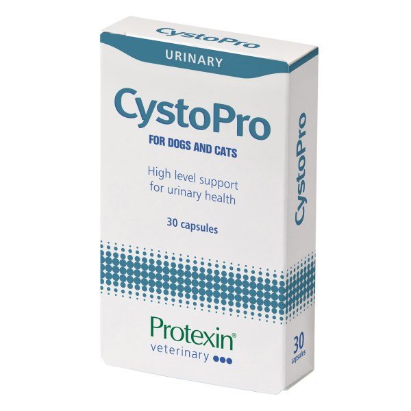 Protexin CystoPro contains an active ingredient derived from cranberries. This active ingredient is a class of antioxidants called Proanthocyanidins (PACs). CystoPro also contains probiotics, prebiotics and N-acetyl D-glucosamine.CystoPro contains:Proanthocyanidins (Type A PACs) - Proanthocyanidins are naturally occurring powerful antioxidants extracted from the North American cranberry. Type A PACs have an anti-adhesion affect, this means they help to reduce the ability of certain bacteria to attach to the bladder lining.Probiotic - The EU-registered strain Enterococcus faecium (NCIMB 10415) E1707 acts to reduce pathogenic bacteria within the gastrointestinal tract and the faeces thereby limiting bacterial colonisation of the perineum.Mannan-oligosaccharide - Created from purified yeast cell walls, Mannan-oligosaccharide (MOS), binds to receptors on bacterial fimbriae which prevents attachment to epithelial cells. MOS is commonly used as a prebiotic to support intestinal microflora.N-acetyl D-glucosamine - N-acetyl D-glucosamine is a precursor to Chondroitin sulphate and Keratin sulphate which make up the Glycosaminoglycan (GAG) layer that lines and protects the sensitive bladder urothelium. A strong, resilient GAG layer prevents bacteria from adhering to the urothelial cells.Artificial chicken flavouring - To improve palatability and compliance.