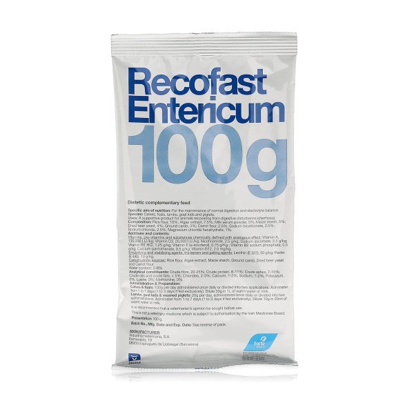 Recofast Entericum is used in pigs, sheep, goats, cattle and horses. It is a natural product that is diluted in milk or water which helps in the fast recovery of young ruminants affected by diarrhoea. It acts as an astringent, a rehydrating agent and a nutritional supplement. It gives rapid results with no withdrawal time and is easy to use.