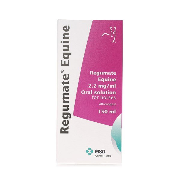 Regumate Equine Oral Solution for Horses is indicated for the suppression and prevention of oestrus in mares. This hormonal treatment is used in mares with significant follicular activity during the transitional period between seasonal anoestrus and the breeding season.Regumate Equine is for oral administration only with the daily recommended dose of 0.044mg altrenogest per kg body weight for 10 consecutive days. It can be added to the mare's feed, at a single feeding per day, or directly administered into the mouth using a syringe.Do not use in males. Do not use in mares where uterine infection has been diagnosed.