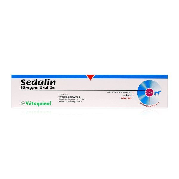 Sedalin Oral Gel is used for the sedation of horses. It is designed to be used by owners or vets when an injectable product is not suitable or indicated, such as transport, clipping, shoeing, clinical examination or dentistry.Moderate sedation: 0.15 mg acepromazine