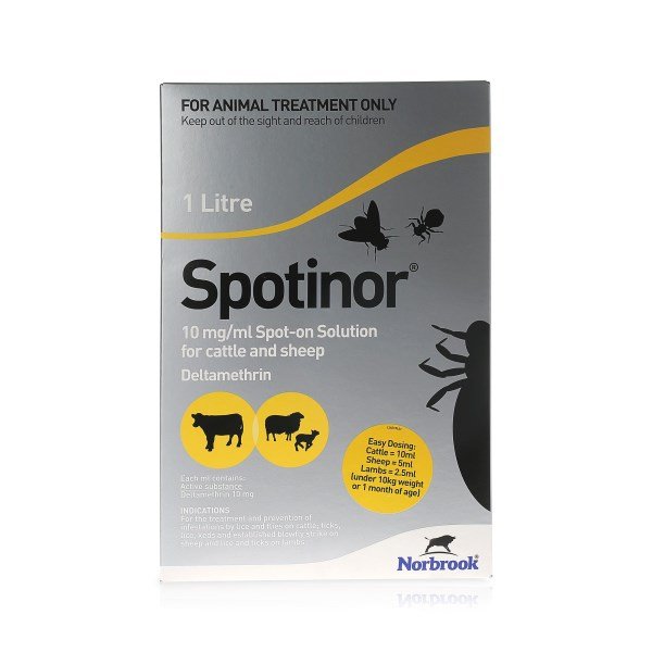ml Spot-On solution is used for the treatment and prevention of infestations by lice and flies on cattle; ticks, lice, keds and established blowfly strike on sheep and lice and ticks on lambs.Recommended DosageCattle: 100 mg of deltamethrin per animal corresponding to 10 ml of productSheep: 50 mg of deltamethrin per animal corresponding to 5 ml of productLambs (under 10 kg bodyweight or 1 month of age): 25 mg of deltamethrin per animal corresponding to 2.5 ml of productFor external use only. Please see data sheet for detailed administration and dose.