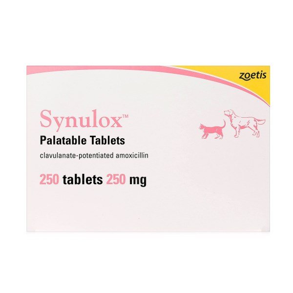 Synulox Palatable Tablets 250mg have been shown to be effective in treating a wide range of diseases of cats and dogs including: Skin disease (including deep and superficial pyodermas); soft tissue infections (abscesses and anal sacculitis); dental infections (e.g. gingivitis); urinary tract infections; respiratory disease (involving upper and lower respiratory tract); enteritis.
