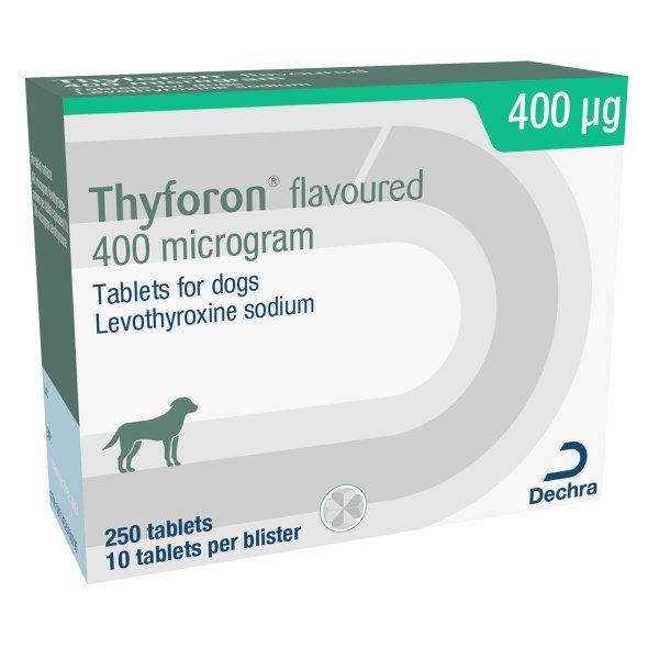 Thyforon Flavoured Tablets for Dogs are used for the treatment of hypothyroidism in dogs. The diagnosis of hypothyroidism should be confirmed with appropriate tests.The recommended starting dosage of levothyroxine sodium is 10 µg